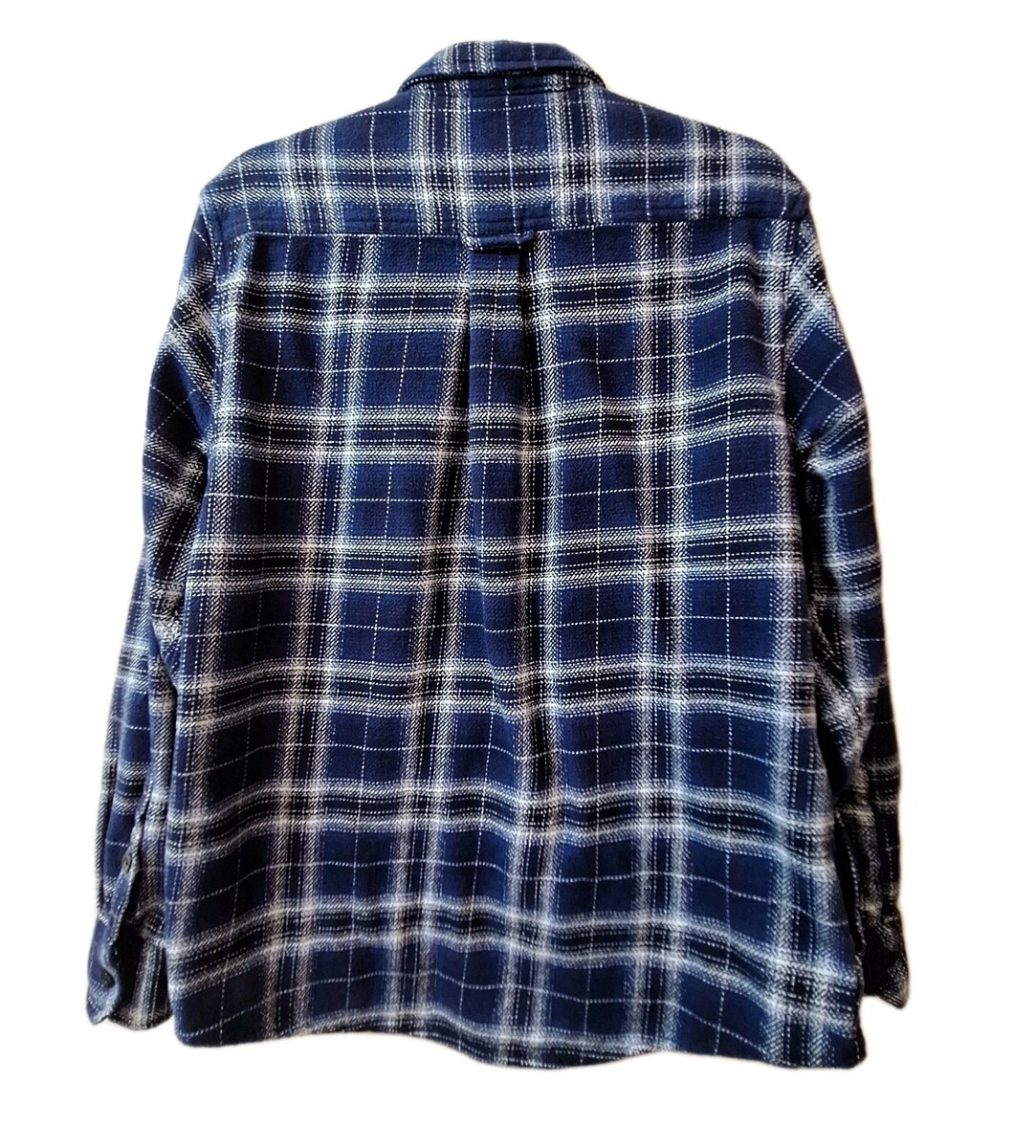 - Woolrich Shirt Mens Medium Blue Plaid Flannel Heavyweight Shacket Pockets Cotton