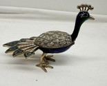 Work of Art Metal Peacock Jeweled Enamel Hinged Trinket Box Gold Green Red Decor