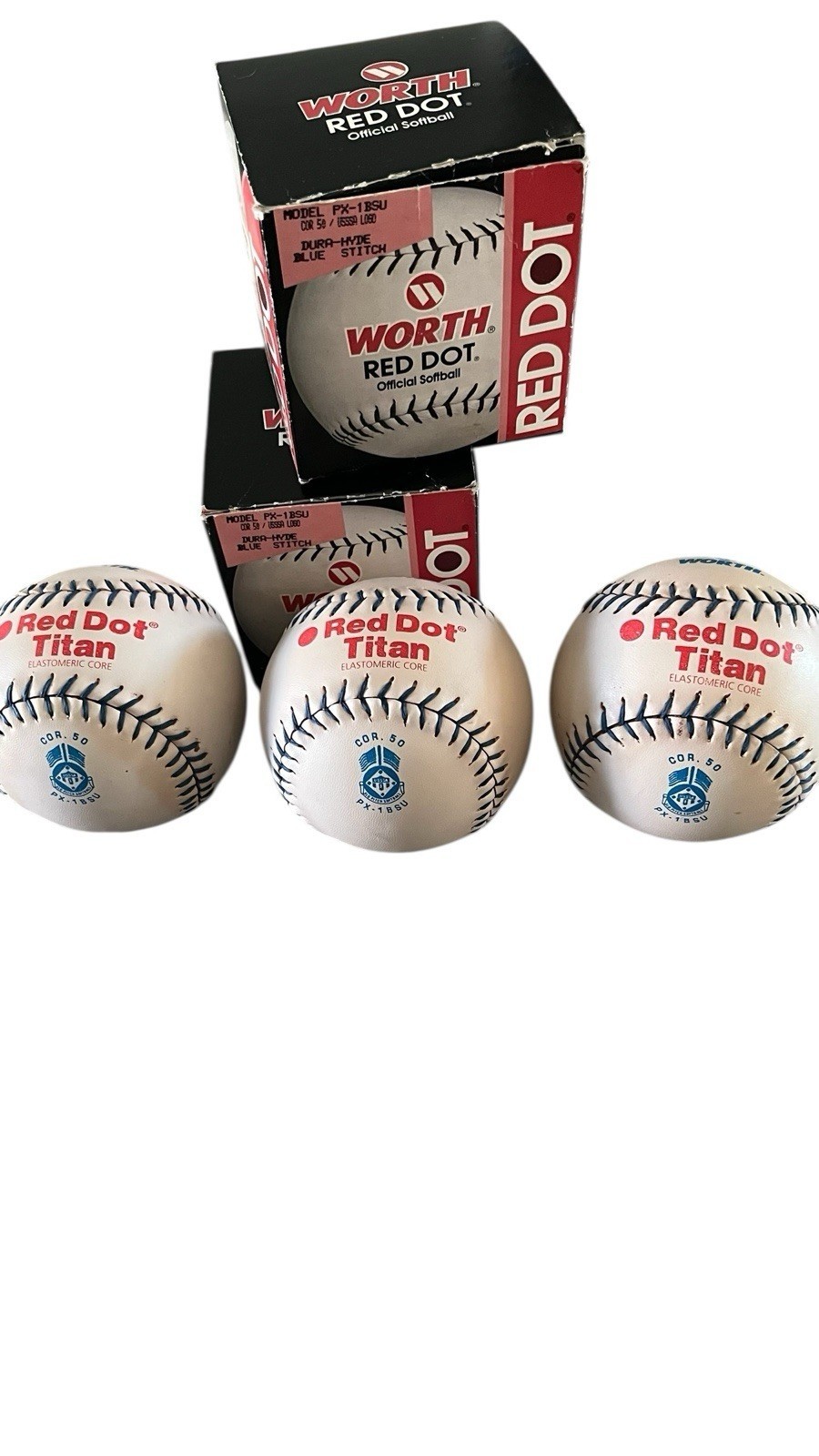 - Worth Red Dot Official Softball Model PX-1W 50 Core LOT of 3 Balls NEW