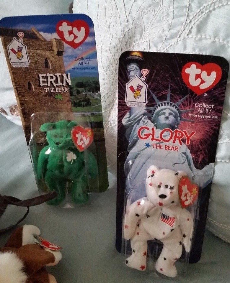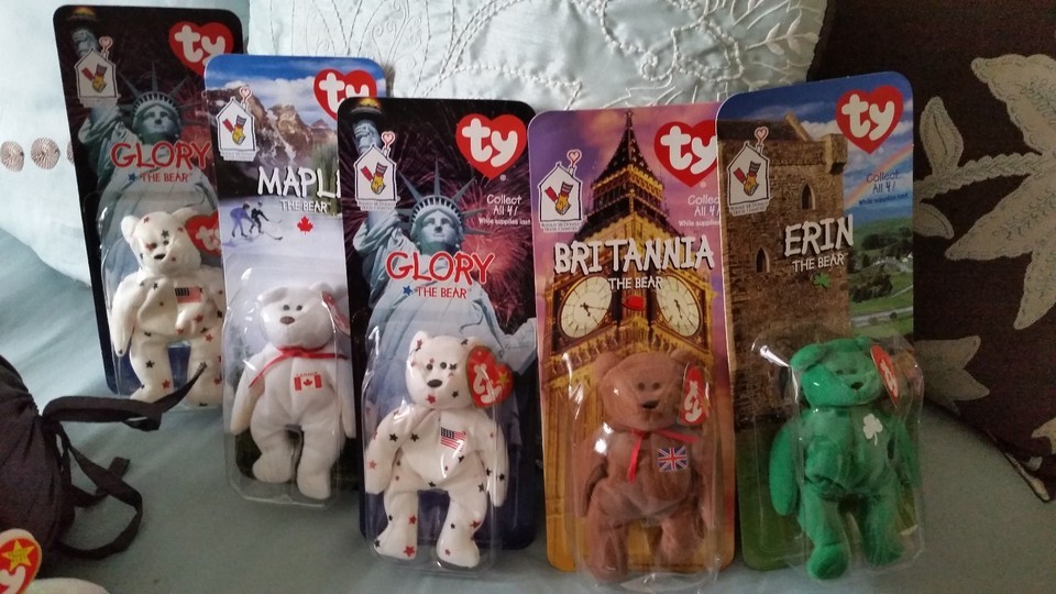 Adorable collection of 17 Ty Beanie Babies... All in great condition! All with tags attached! The 5 Ronald McDonald Charity Bears, Erin, Glory (2) Maple and Britannia are all NIB and dated 1999... Here is a list of the 12 remaining beanies...
