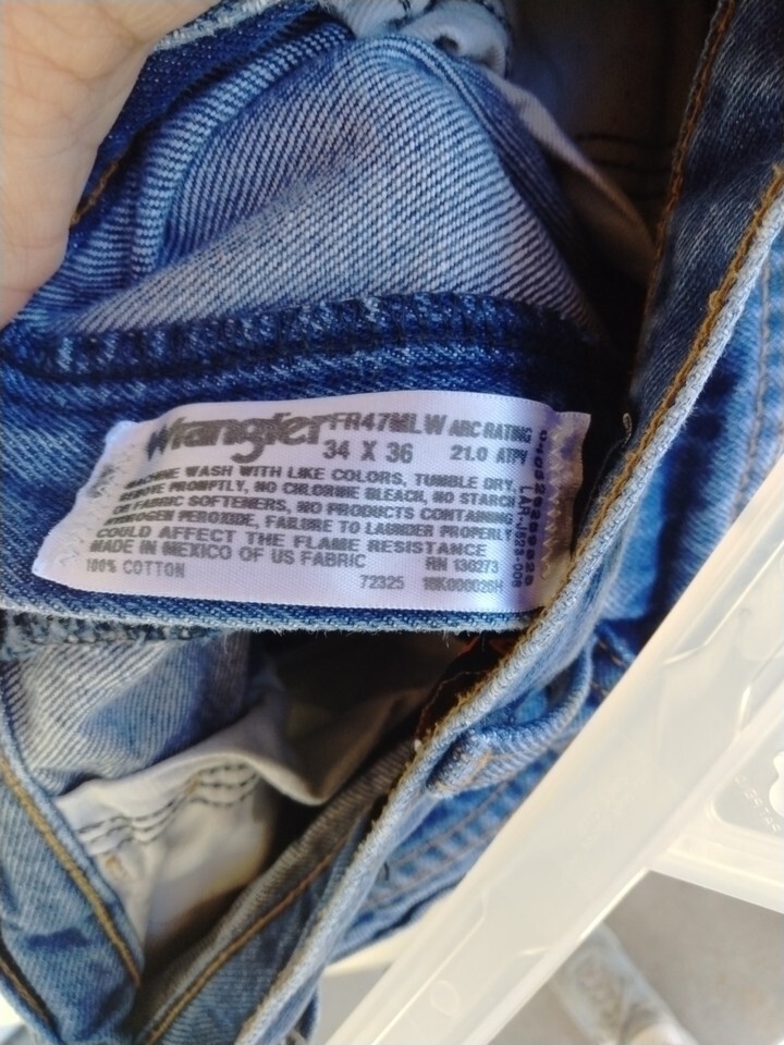 Wrangler Regular fit Cat 2/2112 FR Mens Jeans Size 34×36 Straight Leg