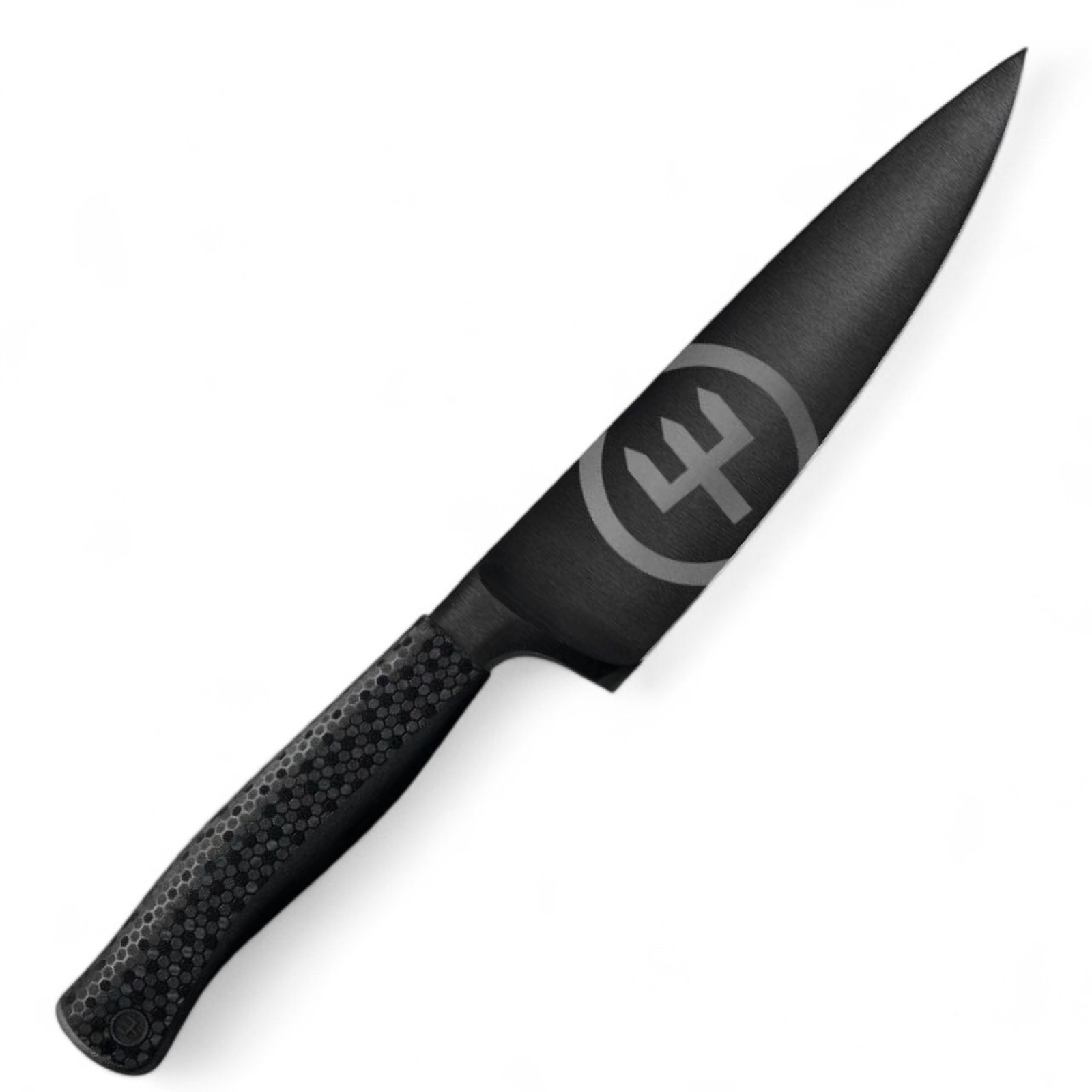 Wusthof is renowned for high-quality German-made knives, and the Wusthof Performer 6" Chef's Knife is no exception. Forged from high-carbon stainless steel, this knife boasts a Rockwell hardness rating of 104 HRC. The diamond-like carbon coating smoothly glides through ingredients of any texture and protects the blade from both scratches and moisture. This knife is perfect for all knife techniques, including mincing, dicing, chopping, slicing, and more. Chef's knives are suitable for cutting anything you need, from meat and fish to fruits, vegetables, and herbs. A honeycomb texture makes the ergonomic handle non-slip for comfort and control. This knife is equipped with a full bolster and finger guard to protect your hands and provide balance. The elegant black finish makes this knife an attractive addition to your knife collection. The heat-resistant blade is nonstick and frictionless, preventing food, fats, and acids from sticking to the knife and making cleanup effortless. This knife is dishwasher-safe, but handwashing is recommended for longevity. No matter what you're whipping up in the kitchen, the Wusthof Performer 6" Chef's Knife will prove to be the knife that you want to use every time!