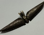Uniquely hand-chased and etched details in the front feathering, the reverse of this WWI 2-1/2 inch sized wing displays numerous small semicircular indentations possibly made by a jeweler?s Cross-Pein hammer while shaping and strengthening the badge. The wings are silver, vaulted, and hand hammered made by a jeweler.