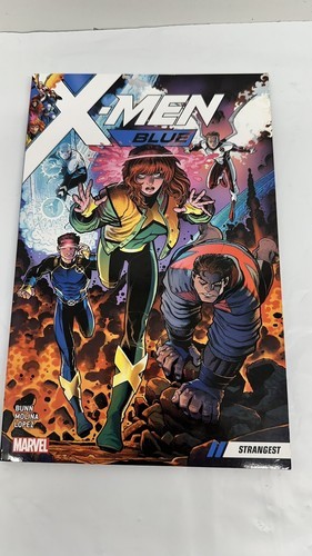 Experience the excitement of X-Men Blue Vol. 1: Strangest, published by Panini in 2017. This remarkable graphic novel features a unique storyline and stunning artwork, bringing the world of the X-Men to life like never before. Join the team on their latest mission and explore the rich tradition of US comics with this incredible addition to your collection.