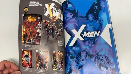 Discover the thrilling adventures of the X-Men Blue team in this captivating graphic novel. Immerse yourself in the world of US comics with the first issue of this Marvel Comics publication, featuring the iconic X-Men characters. This collectible item is a must-have for fans of the series, and is sure to be a prized addition to any comic book collection.