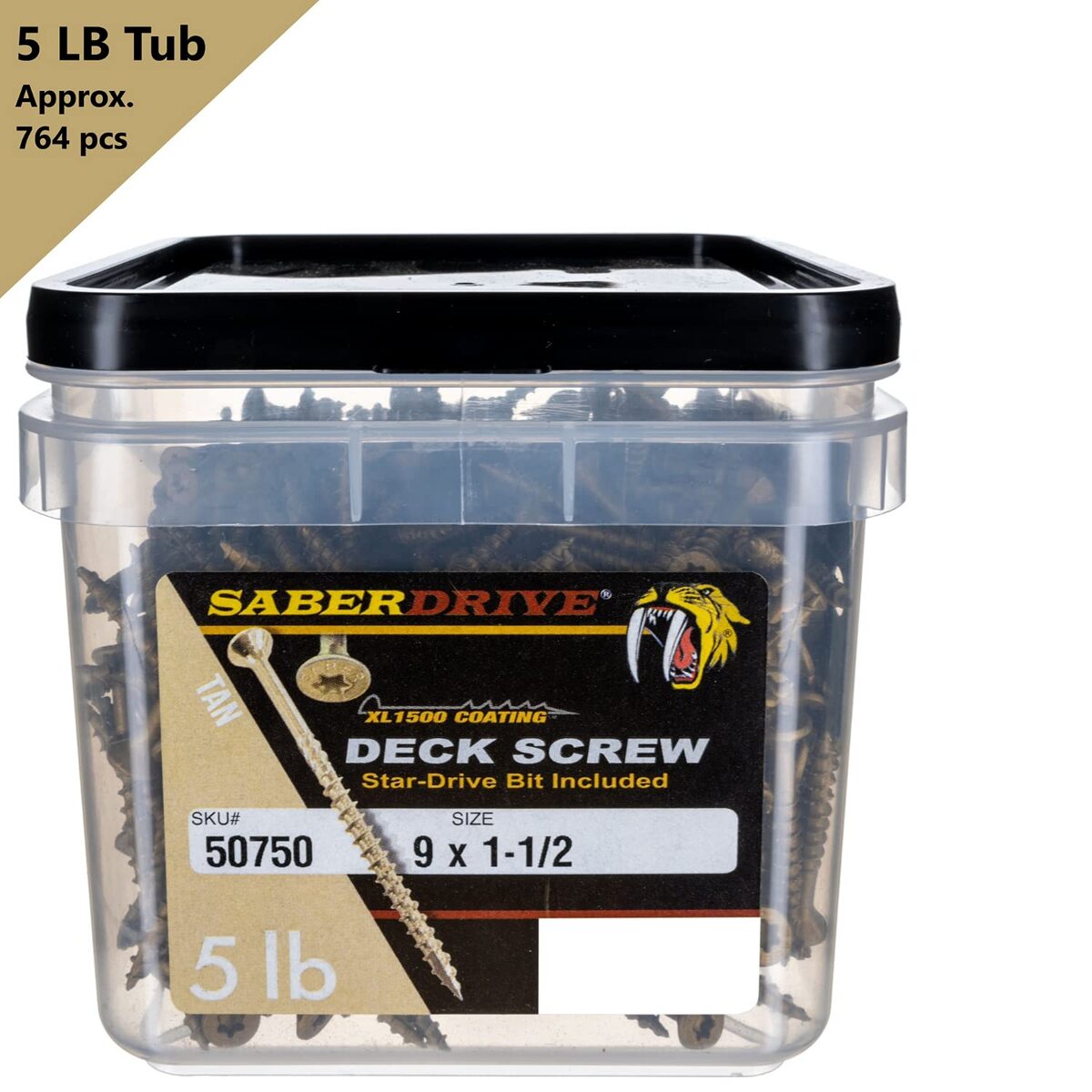 Saberdrive Tan XL1500 Coated Exterior Star Drive Multi-Purpose Deck Screws #10 (