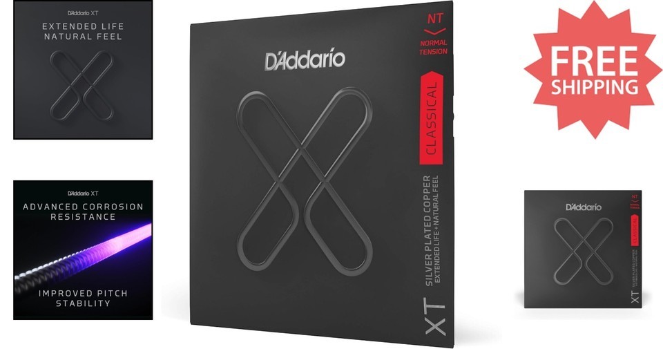 Experience the superior durability and rich sound of D?Addario XT Classical Strings. Featuring advanced corrosion-resistant coating on every wound string, these strings maintain a natural tone and feel while offering extended life. Crafted with proprietary composite basses and precisely intonated Pro-Arte nylon trebles, they deliver a dynamic response and pure classical tone. Designed with tie-ends, nylon monofilament, and silver-plated copper wrap wire, they are perfect for classical guitarists seeking reliability and exceptional sound. Made in the USA at our New York facility, XT Classical Strings are our longest-lasting set, combining centuries of expertise with modern technology. The Normal Tension set offers a balanced blend of rich tone, comfortable playability, and strong projection. To ensure fast and reliable delivery, we work with multiple fulfillment partners and suppliers. Depending on availability and location, your order may ship from different warehouses or arrive in packaging that varies from item to item. Tracking details are typically provided shortly after shipment, and customer satisfaction remains our top priority. Please note that due to carrier policies and regional regulations, certain items may not be eligible for delivery to specific states or territories.
