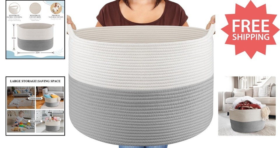 - XXXLarge Cotton Rope Storage Basket - Stylish 22"x22"x14" for Toys & Laundry