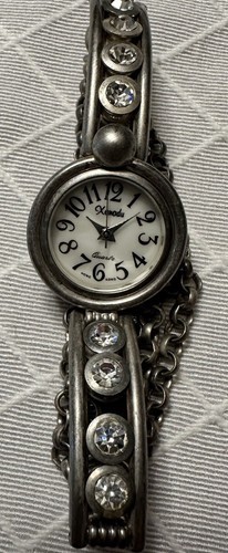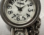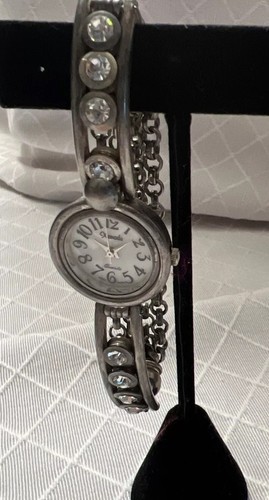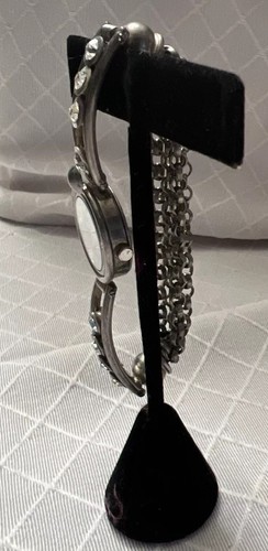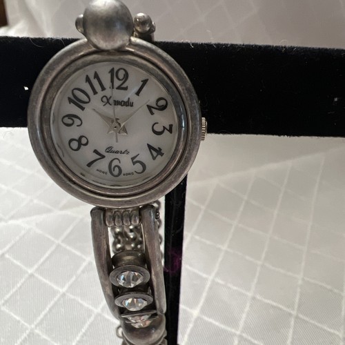 This is untested. The Xanadu Silver Tone Quartz Analog Women's Watch features a silver bezel and a white mother of pearl dial with Arabic numerals as indices. It has a small 25mm round case in silver color with a fixed bezel and a snap caseback. The bracelet band is made of metal in a silver tone, and the watch includes features like a seconds hand and a 12-hour dial. This elegant timepiece is suitable for both dress/formal and casual occasions, making it a versatile accessory for any woman's wardrobe.