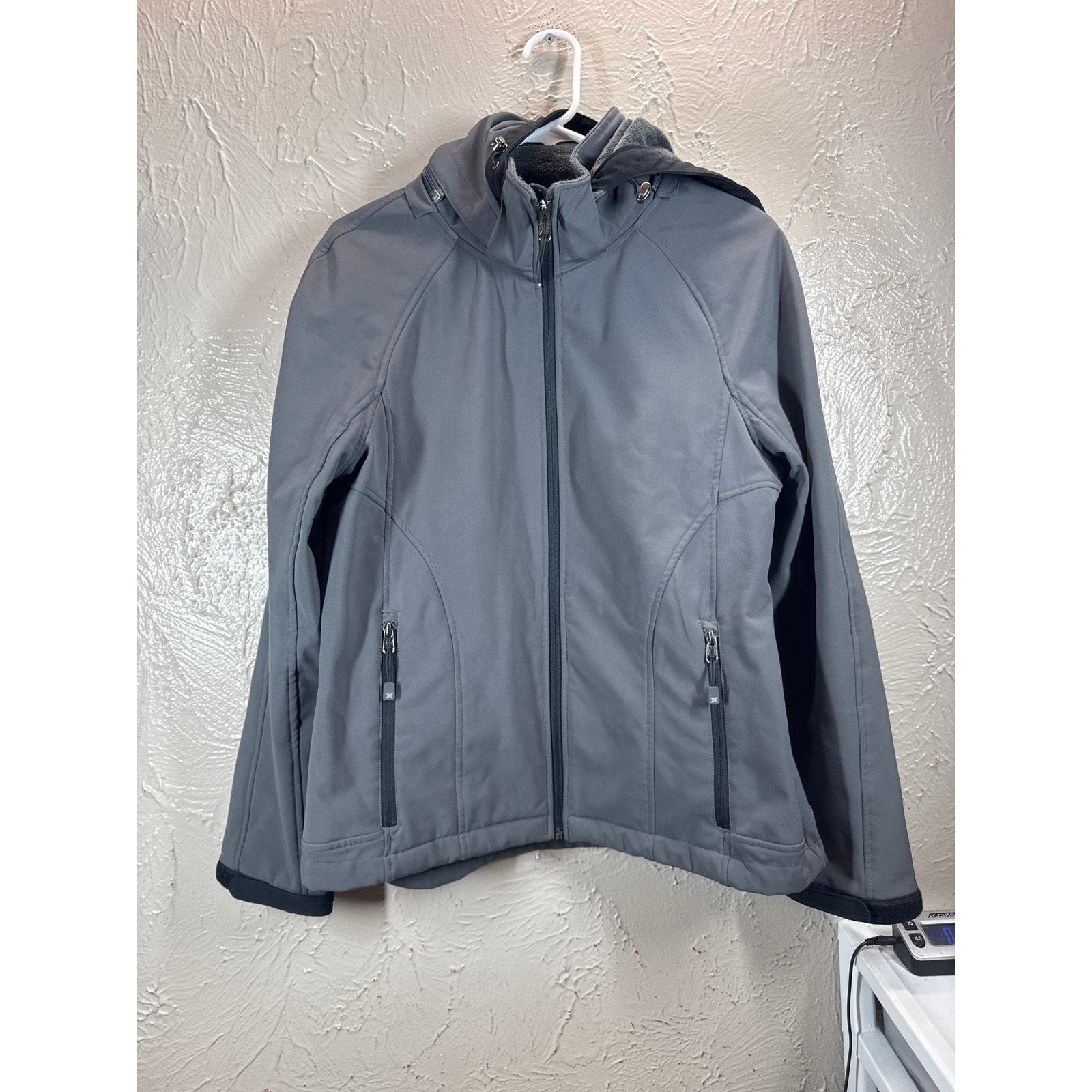 - Xersion Gray Performancewear Zip Up Raglan Sleeve Hooded Coat Womens Size Medium