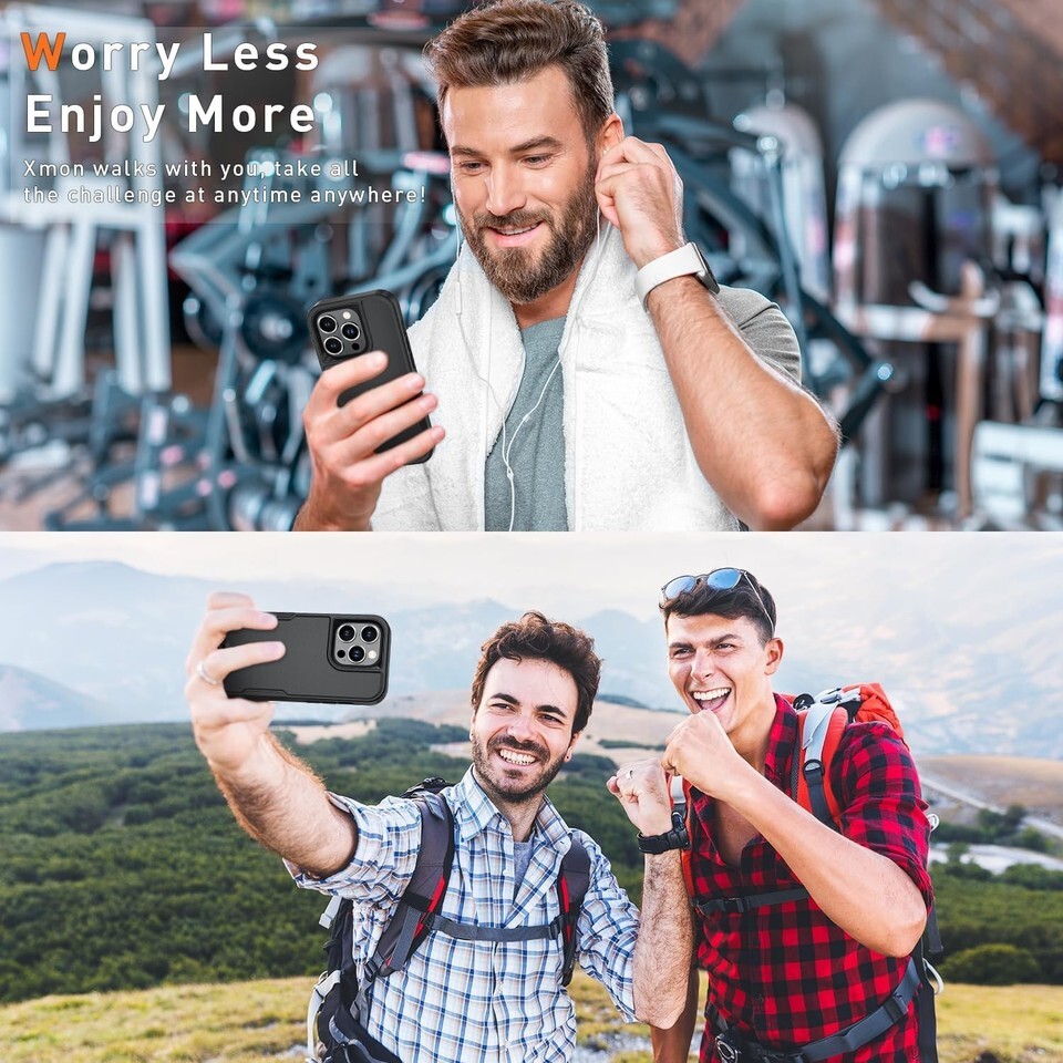 360Full Body Protection with Screen Camera GuardXmon shockproof iPhone 15 Pro case specially with the extra HD Clear camera lens protector and 9H Tempered Glass screen protector included, making your iPhone 15 Pro get a 360-degree full body all-around protection.Featuring maximum protection from scratches, scrapes, bumps, and any other accidents while maintaining its original response sensitivity.