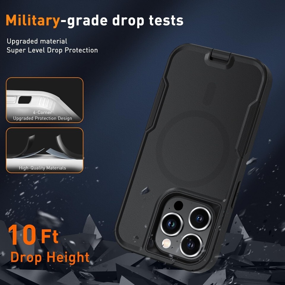Certified 10FT Mil-Grade Shockproof Xmon shockproof iPhone 15 Pro Case is certified to exceed Military Grade Drop Test standards and survive drops up to 10 feet (3m). Unique three layer shock-absorbing design, 4 anti-collision corners effectively absorb and disperse 99% of the impact force. Provides super drop and shock protection for your iPhone 15 Pro