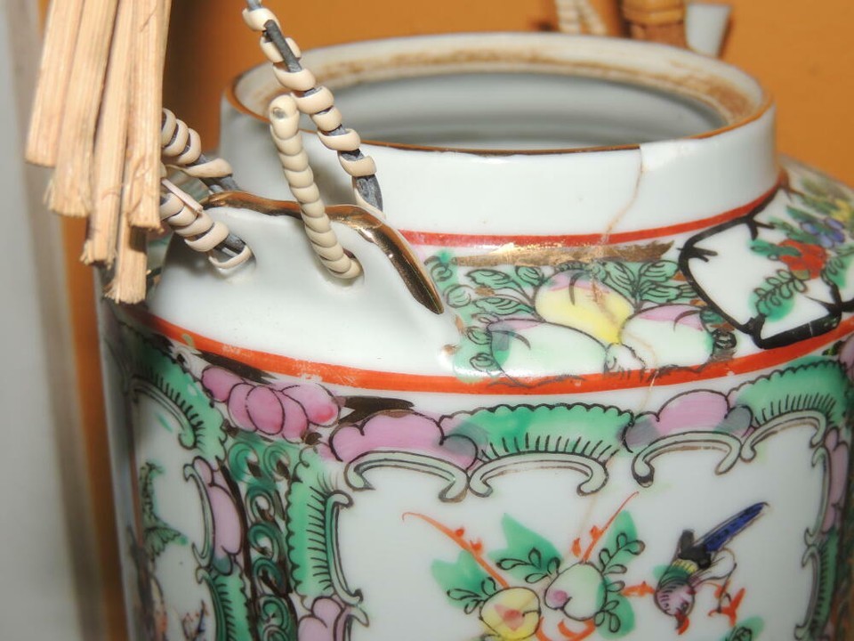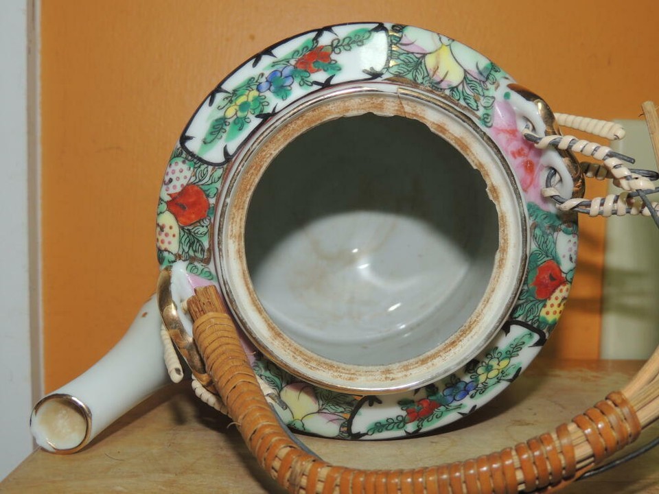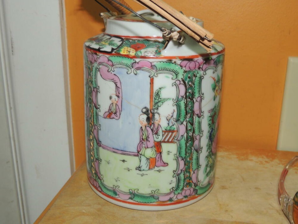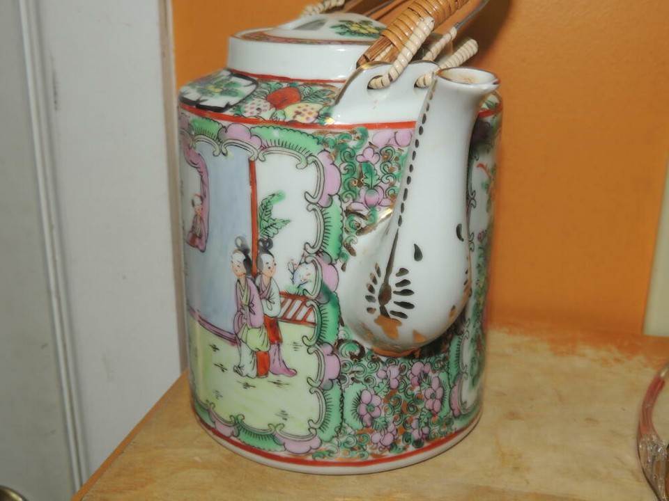 Y.T Porcelain 6.5" Teapot Famille Rose Medallion Rose Mandarin Vintage damaged
