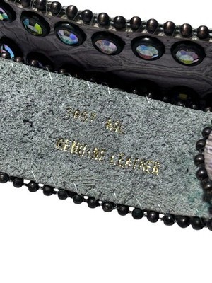 - Y2K Genuine Leather Bling Jeweled Pink w/Multi Color Crystals Belt w/Buckle M/L