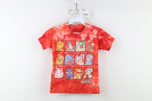 - Y2K Pokemon Boys Size XS Spell Out Acid Wash Short Sleeve T-Shirt Rd Cotton
