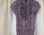 - Y2K Sami & Max Purple Zebra Print Sheer Ruffle Blouse Puff Sleeve Size M