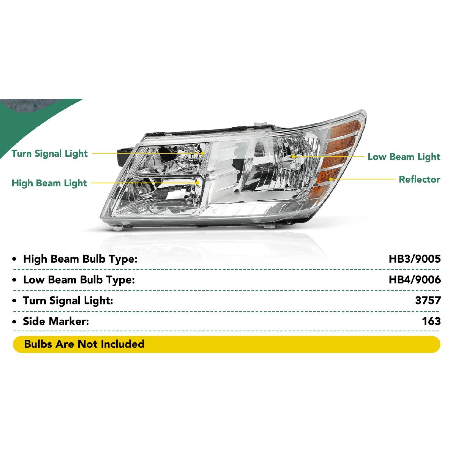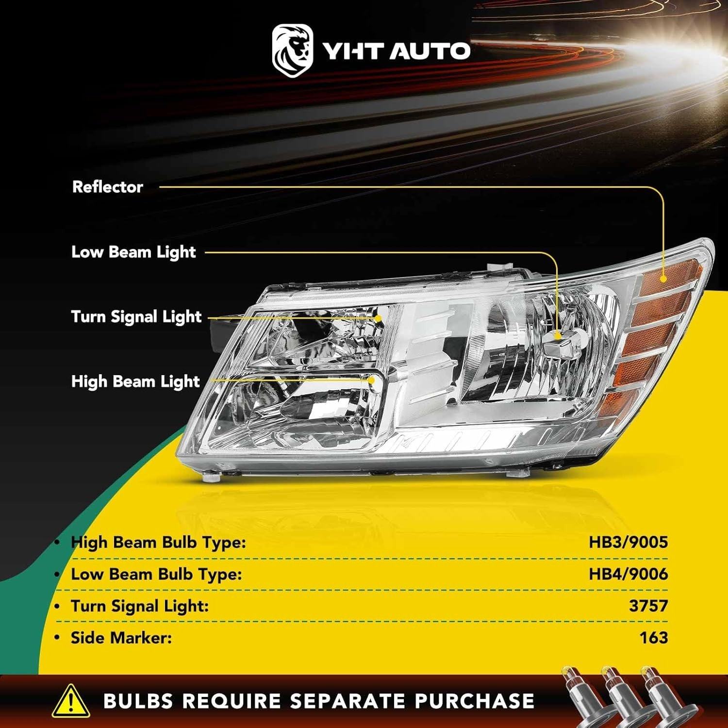 - YHTAUTO Headlights for 2009-2020 Dodge Journey Pair Clear Lens Chrome Housing