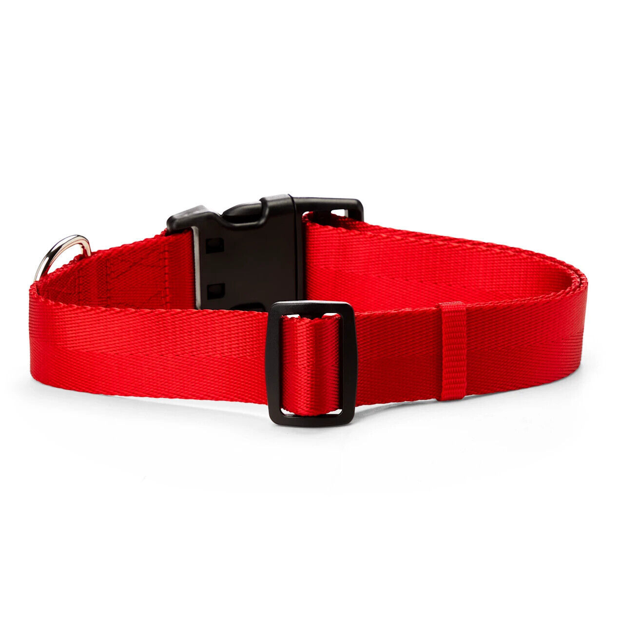 You are Buying a Brand New And factory Sealed YOULY The Classic Red Webbed Nylon Dog Collar, Small. Description Youly's The Classic Red Webbed Nylon Dog Collar does the trick for masters of the understated. Adjustable so it fits you perfectly, this collar is made of durable webbed nylon and fastens securely with a slide-release buckle. Basically, it's a true classic. Just like you. - The Classic Red Webbed Nylon Dog Collar from Youly - Durable webbed nylon - Adjusts for a comfy fit - Slide-release buckle - D-ring for ID tags, leashes and beacons - Matching leash and harness sold separately. Attributes / Specifications Furniture Properties Material Cotton Item Dimensions Length 9 IN Pet Sizing For Pet Neck Min 09 IN For Pet Neck Max 14 IN.