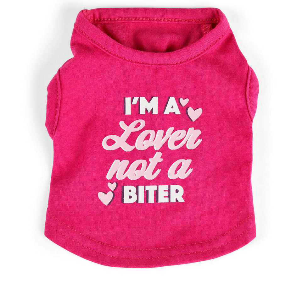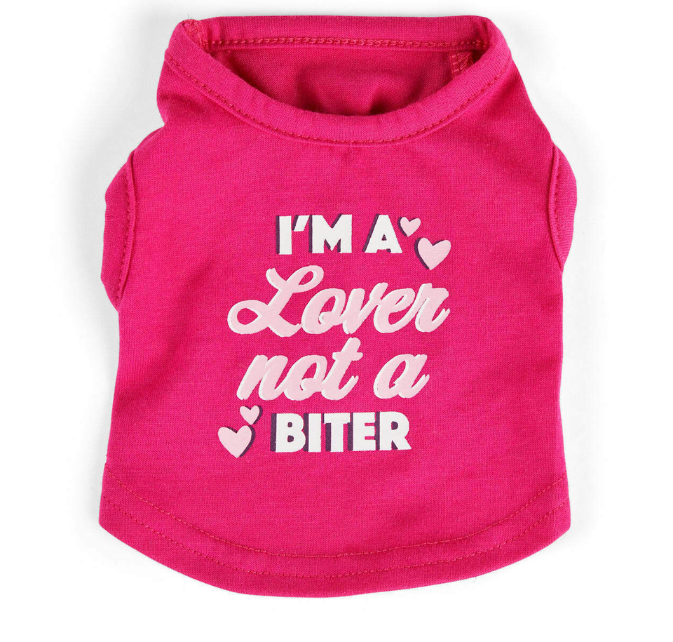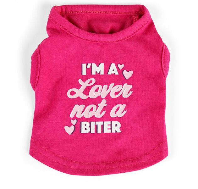 You are Buying a brand New YOULY The Lover Pink I'm A Lover Not A Biter Graphic Small Animal T-Shirt One Size Fit All (XS). Description You live to love - and love to be loved. That's why you're drooling over this alluring new look from Youly. Go on and wear your heart on your sleeve as you win over all your two-and four-legged friends. - The Lover Pink I'm A Lover Not A Biter Graphic Small Animal T-Shirt from Youly - Breathable jersey perfect for everyday wear - Printed with "I'm A Lover Not A Biter" graphic - Pulls over for easy on and off.