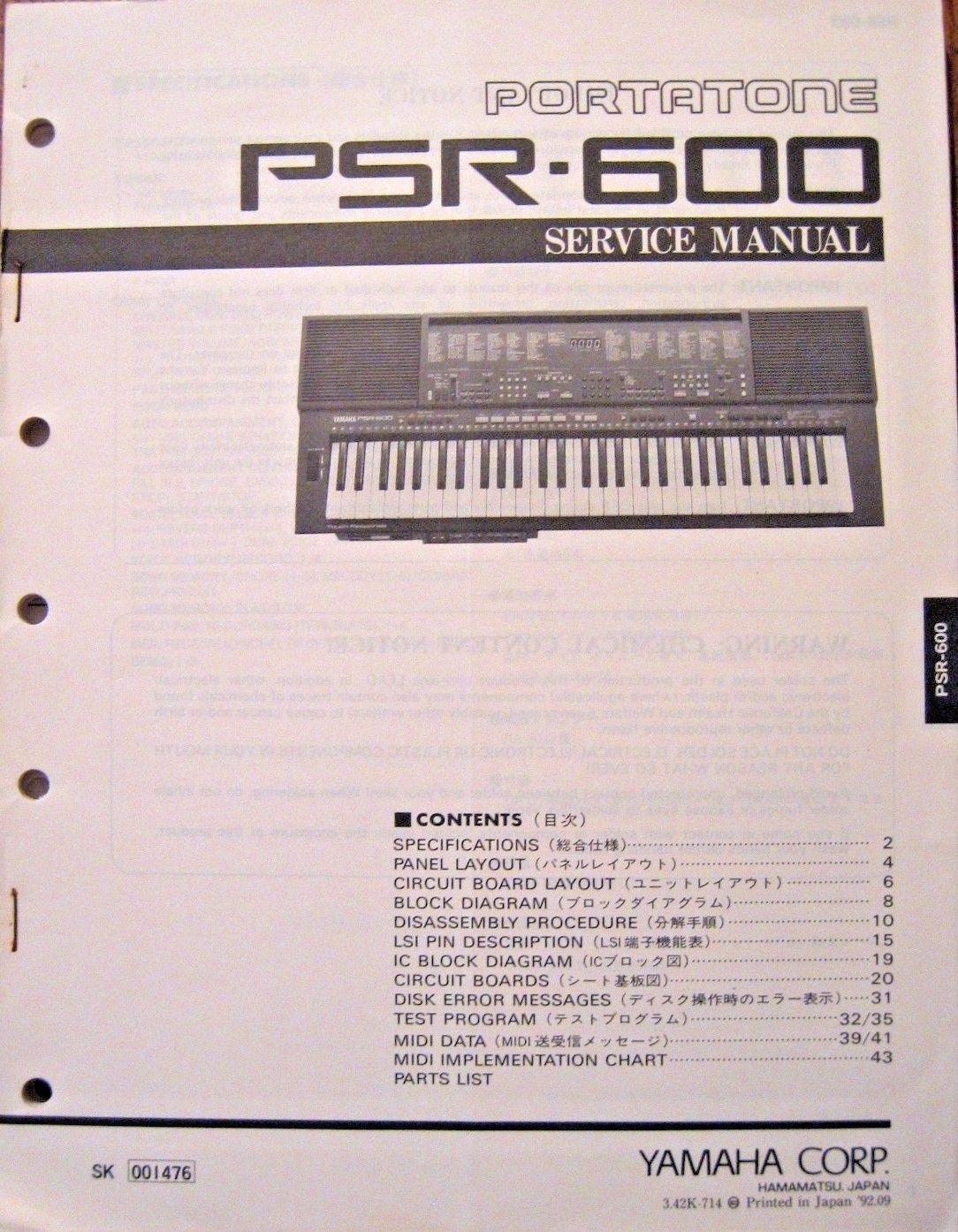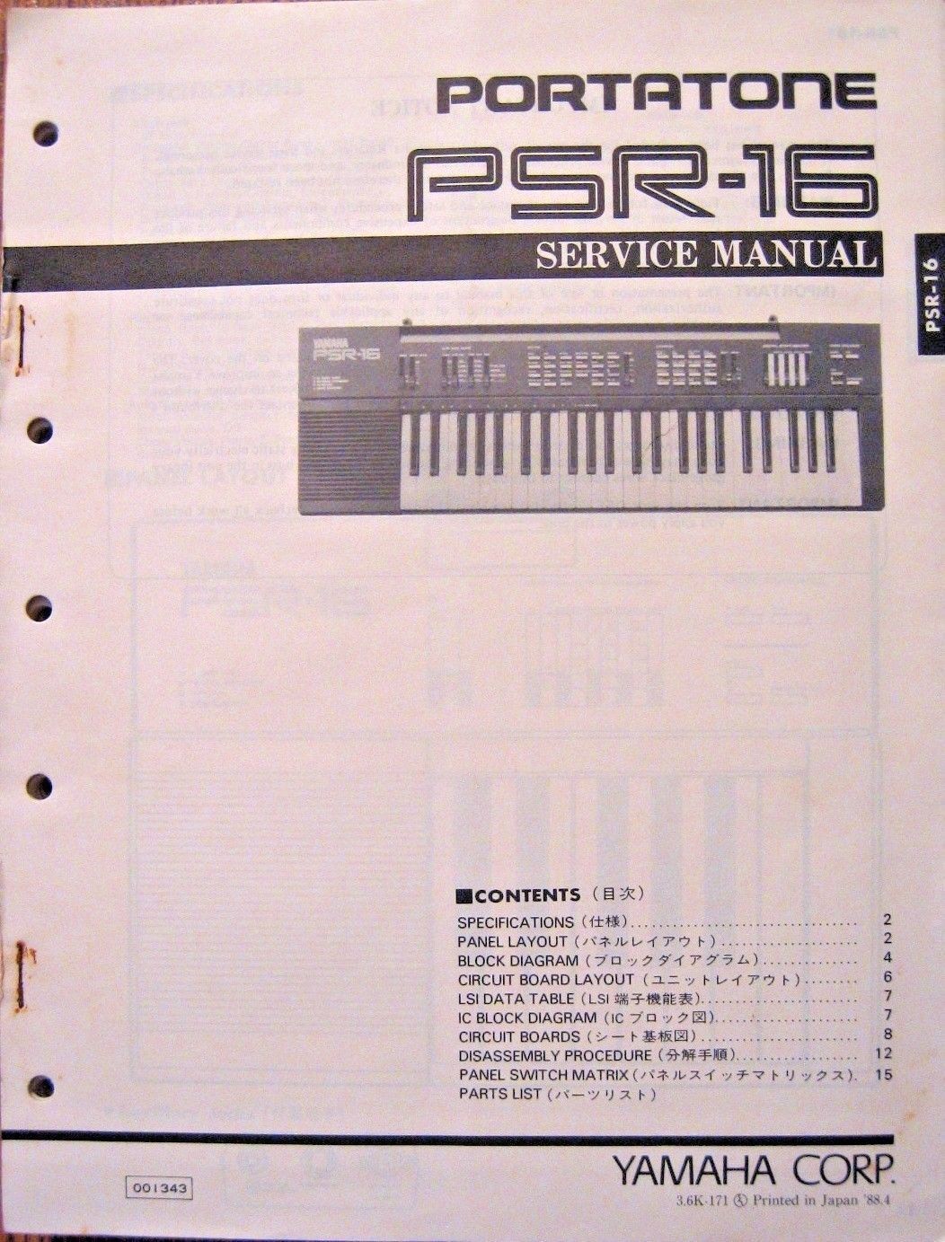 - Yamaha Service Manual Original Books Pic PSR-16 PSR-100 PSR-110 PSR-300M PSR-600
