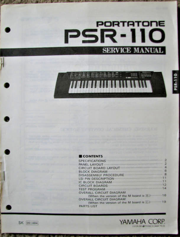 Original Yamaha Service Manual for PSR PortaTone Keyboards. Take your pick, for repair and for circuit bending.