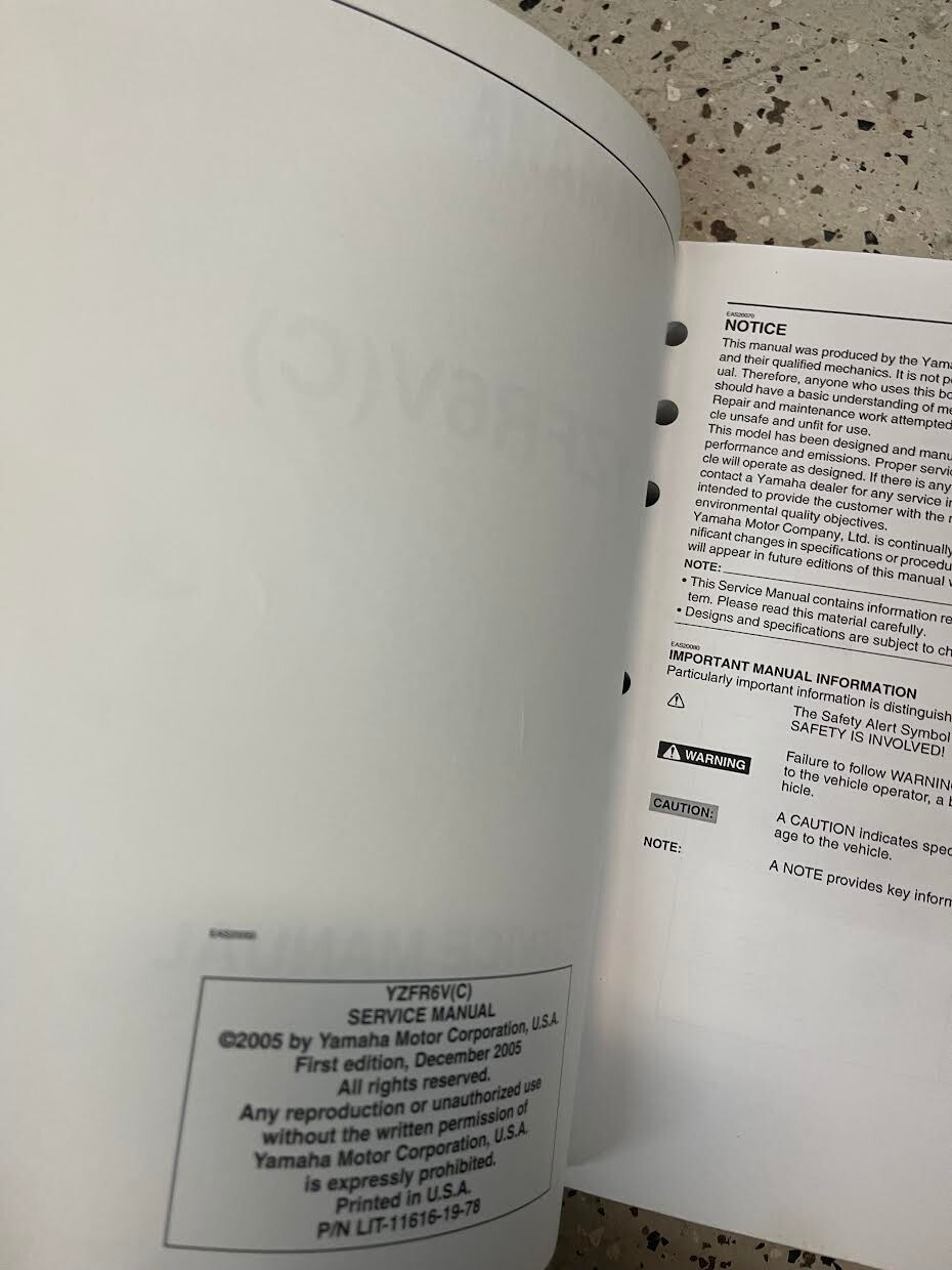 Yamaha YZFR6V (C) Service Shop Repair Manual LIT-11616-19-78 OEM