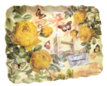 - Yellow Rose Butterfly Serving Tray Platter French Postage Stamp Melamine NEW