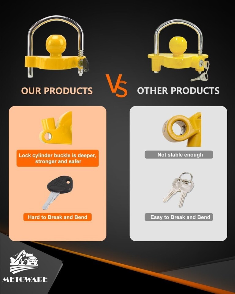 Don?t leave your trailer?s security to chance. Invest in peace of mind with our Yellow Trailer Hitch Lock today!