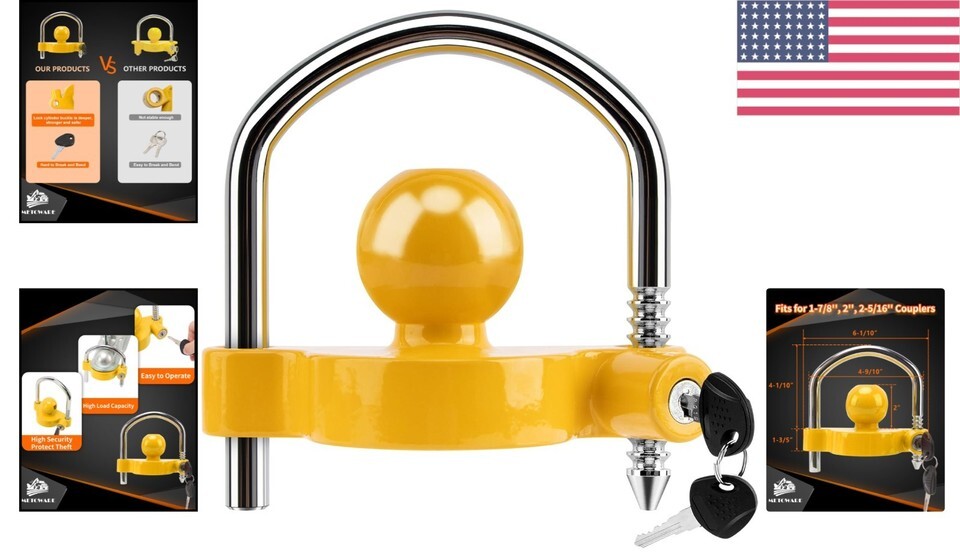 Yellow Trailer Hitch Lock - Heavy Duty Anti-Theft Lock for Towing Safety