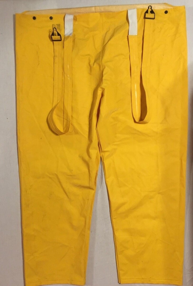 YELLOW XXL 2XL WET RAIN SUIT PANTS BOTTOMS ADJUSTABLE ALESTIC CLIP ON SUSPENDERS