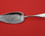 Sterling silver Fish Server, Bright-Cut blade with bid, lily of the valley, butterfly, very detailed, very heavy 7ozt only marked 11 7/8", in the pattern Yerba Buena Hammered aka Janin by Vanderslice. It is monogrammed (monos vary) and is in excellent condition.