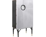 Introducing the ultimate wine cabinet for the modern connoisseur - our stunning Yoela wine cabinet. Crafted with precision and designed to impress, this wine cabinet is a true statement piece for any home. The combination of aluminum and bronze finishes adds a touch of elegance and sophistication, while the decorative rivets provide an industrial edge that will leave your guests in awe. The black iron legs with a gold metal tip not only add to the aesthetic appeal of the cabinet, but also provide a sturdy foundation for your prized wine collection. The cabinet boasts ample storage space with shelves to accommodate bottles of all sizes.