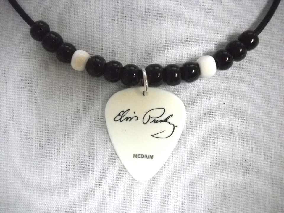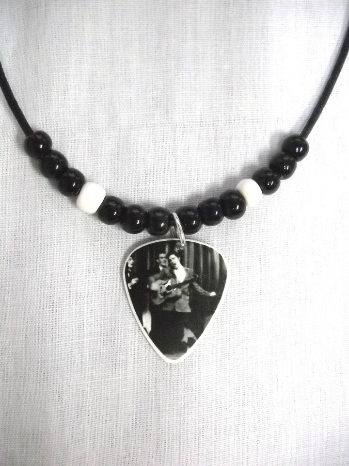 - YOUNG SINGING ELVIS PRESLEY BLACK & WHITE PHOTO GUITAR PICK PENDANT ADJ NECKLACE
