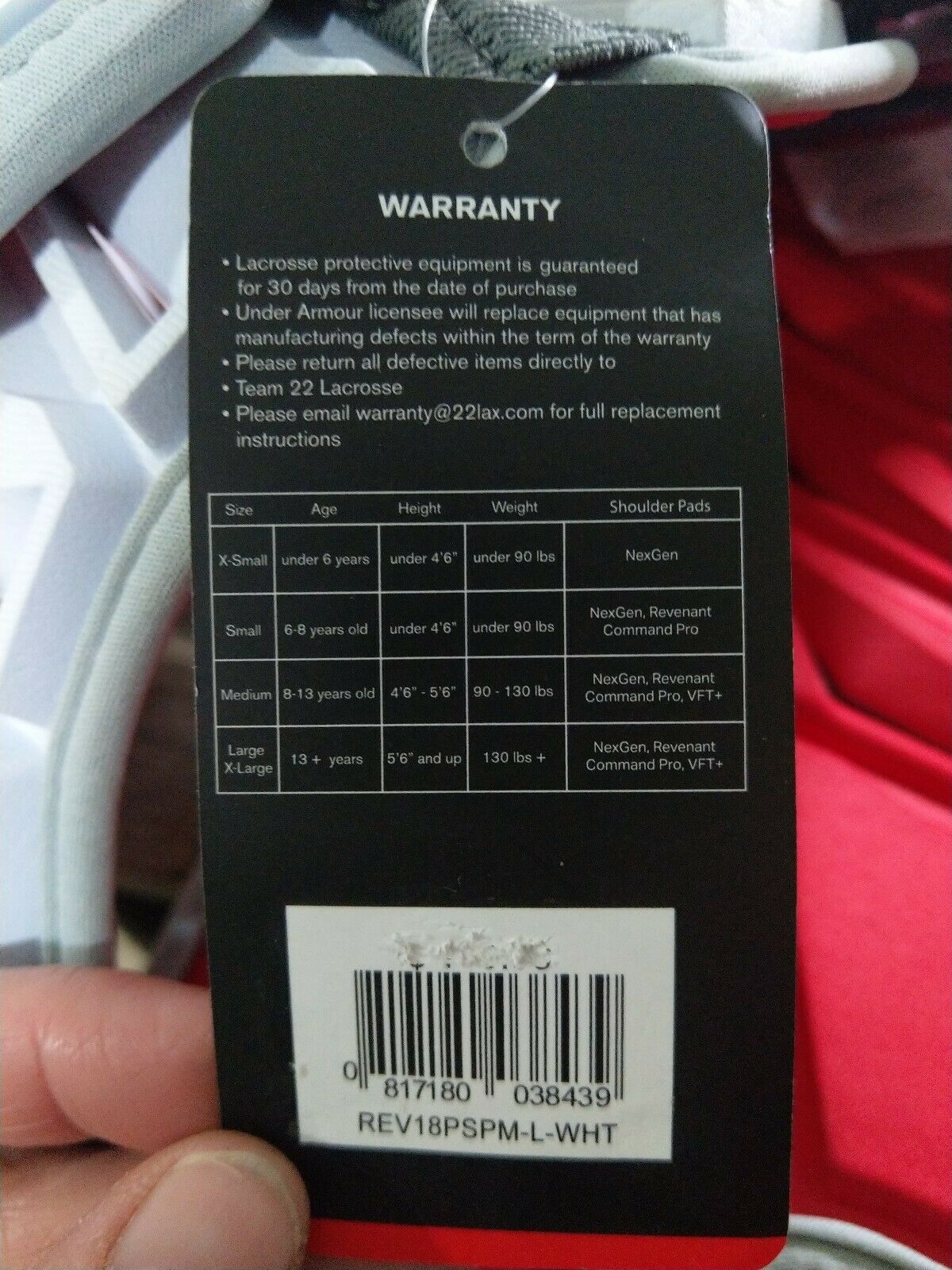 Youth Under Armour Revenant Shoulder Pad Medium~White~ Condition is New with tags. Shipped with USPS First Class Package within 24 hours