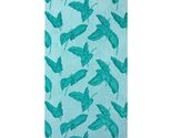 adorned with a jacquard motif of floating leaves in a rich turquoise tone. Set against a light blue background of soft organic terry cloth, pattern resembles free falling feathers