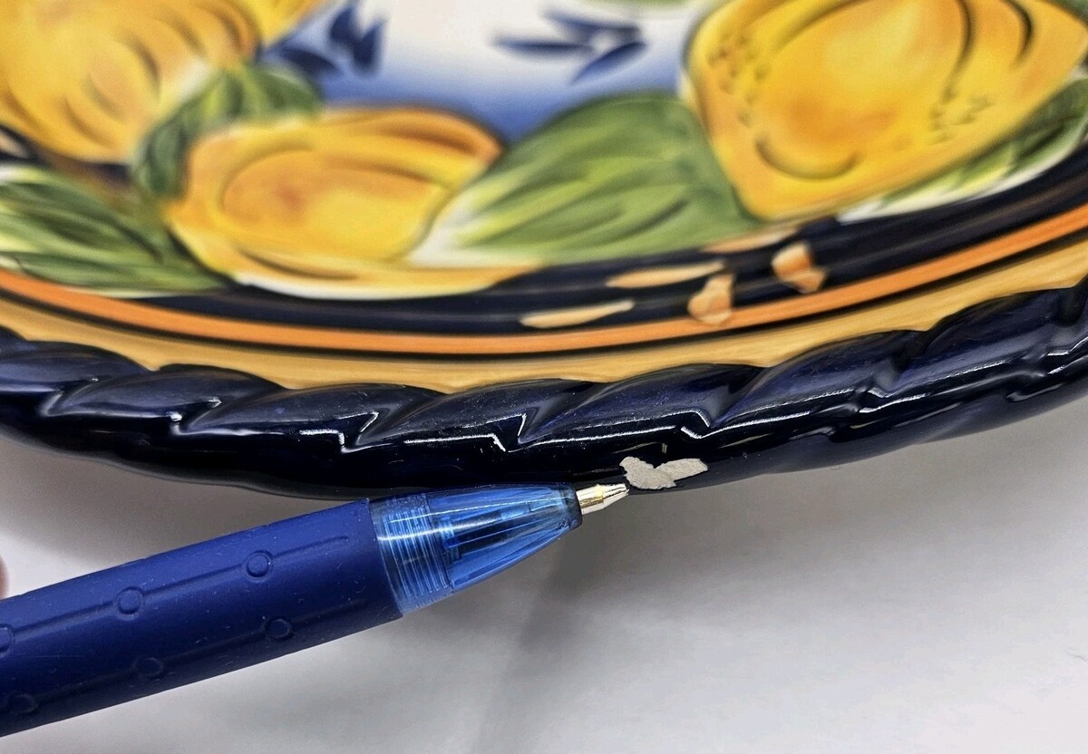 Z Gallerie Palermo 3 Dinner Hand Painted Plates, by Tabletops Lemon Pattern