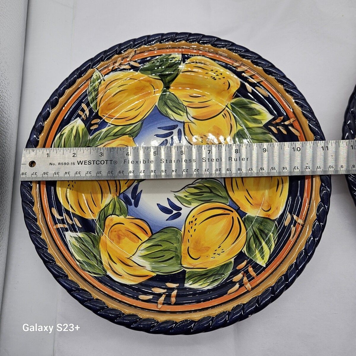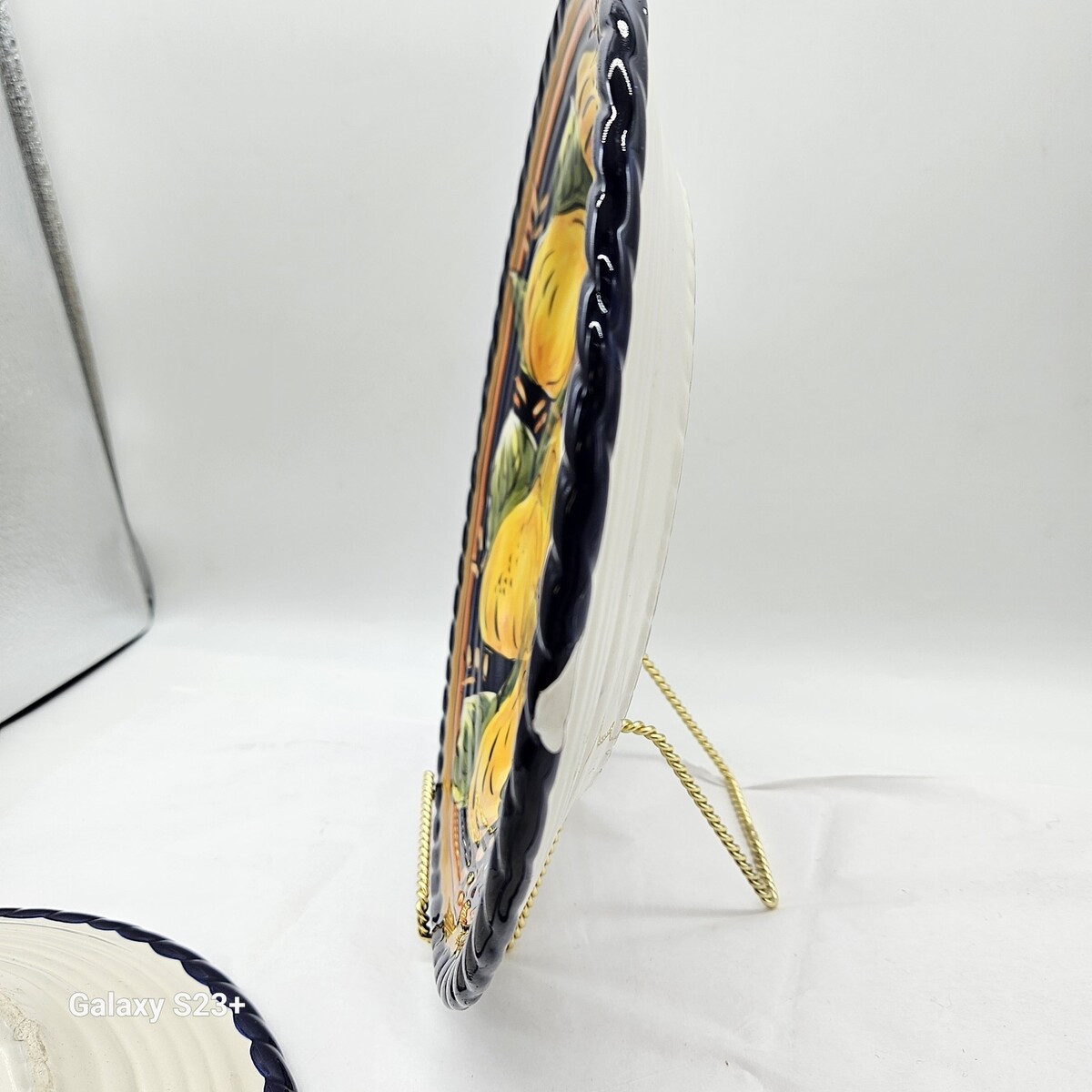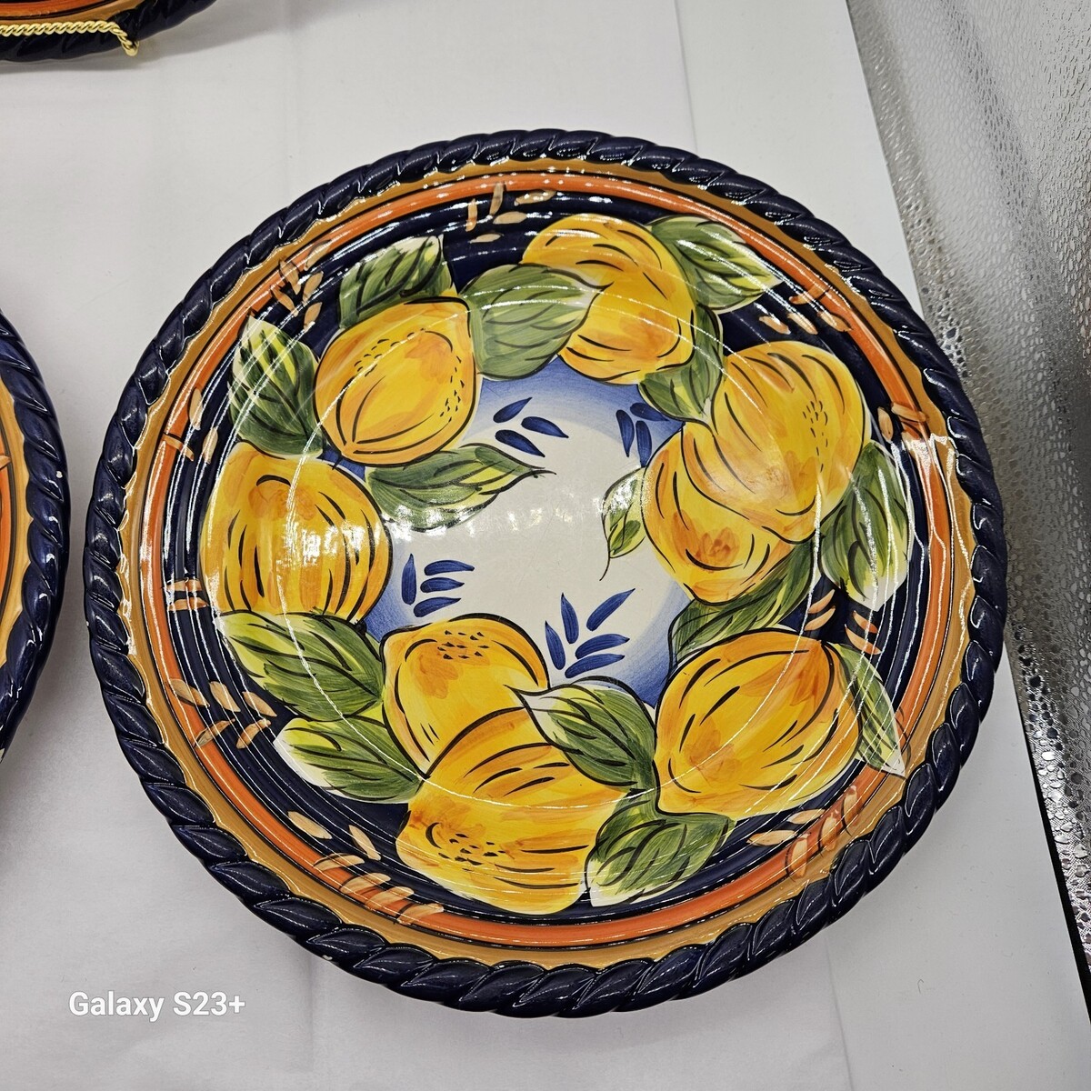 - Z Gallerie Palermo 3 Dinner Hand Painted Plates, by Tabletops Lemon Pattern