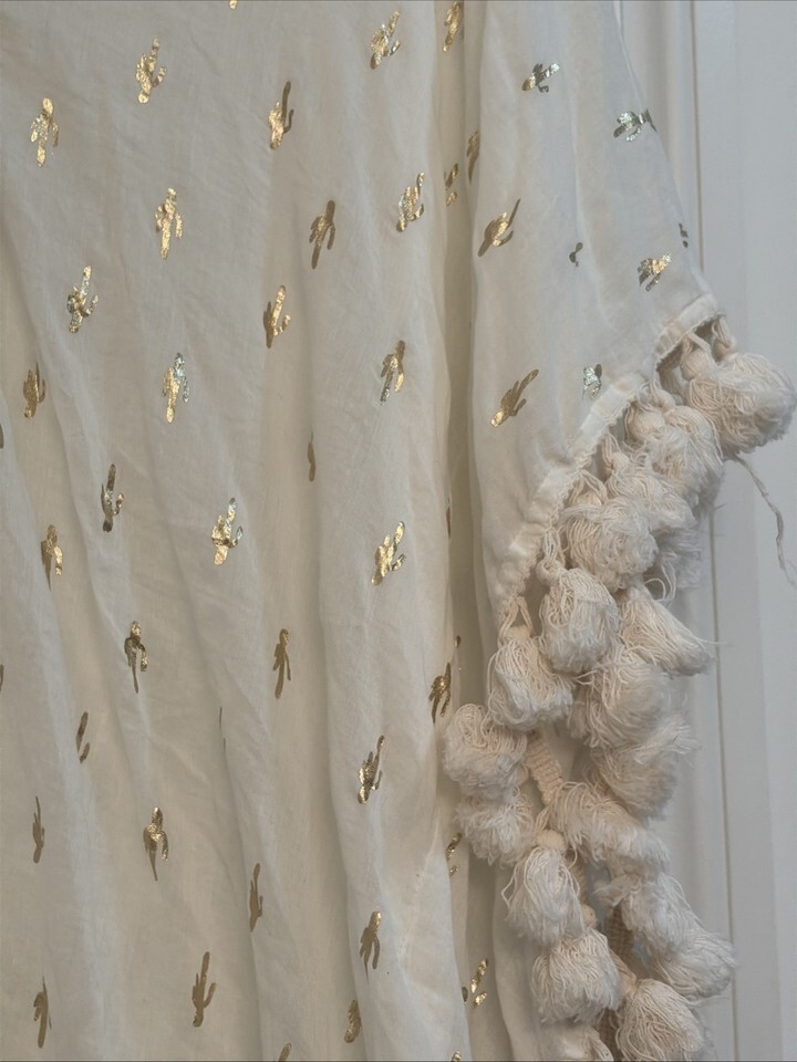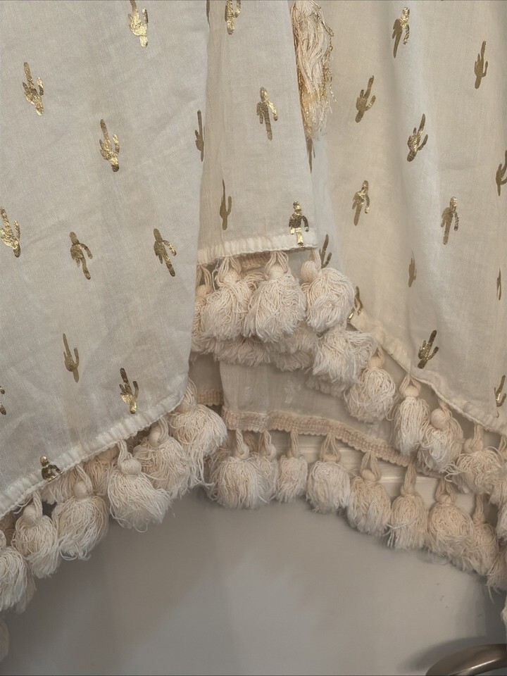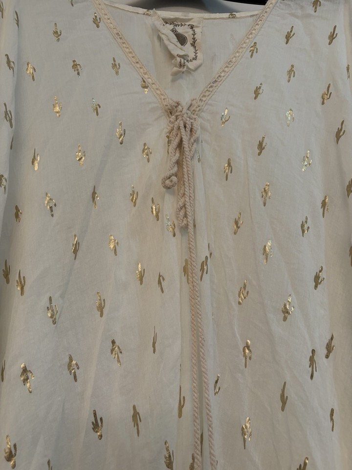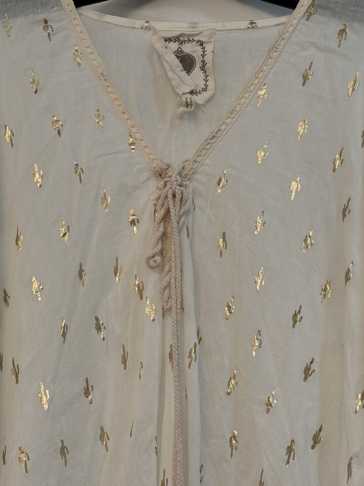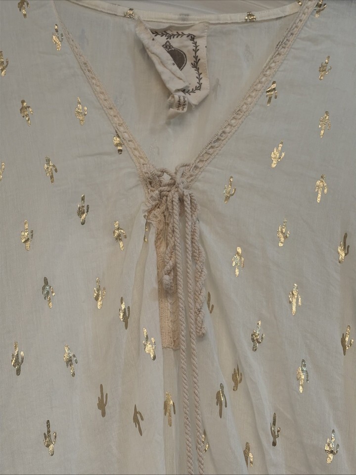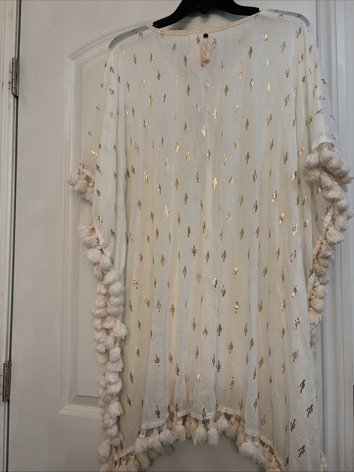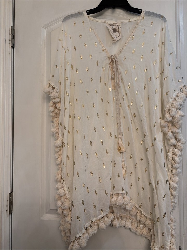 Z&L Swim Tassel Cactus Cream Swim Suit Coverup V Neck Large