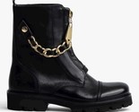 - Zadig & Voltaire Joe Cecilia Smooth Leather Combat Boots Gold Chain Logo $598 37