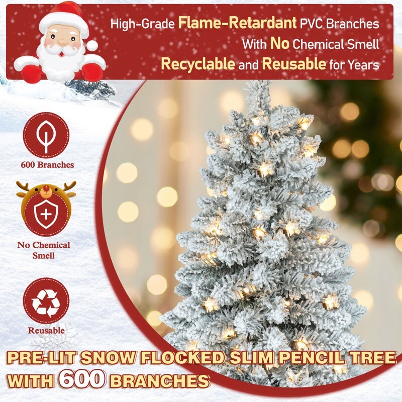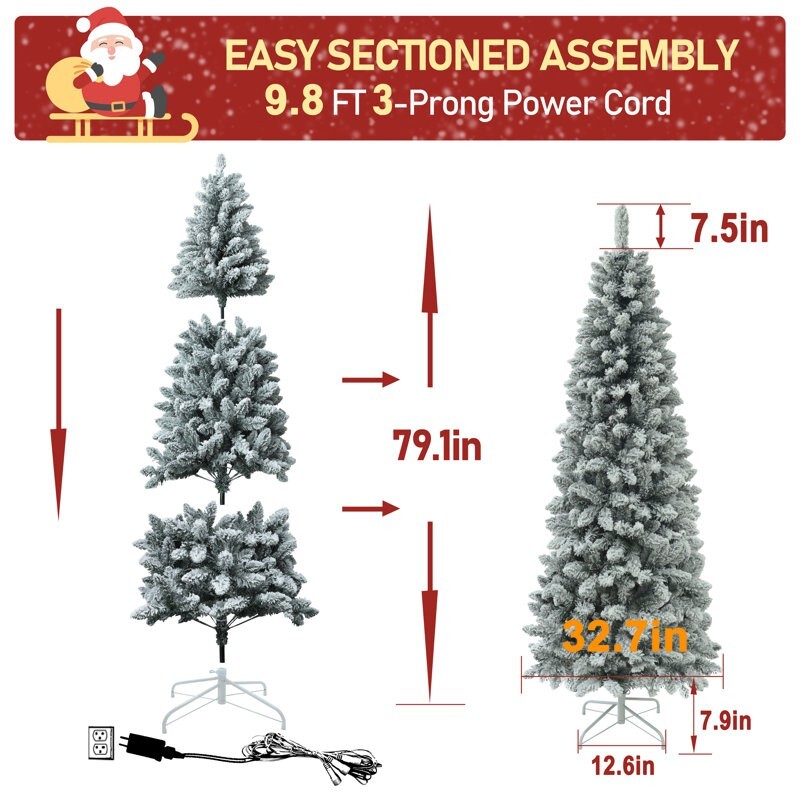 - Zaid Slender Pine Flocked Christmas Tree with LED Lights