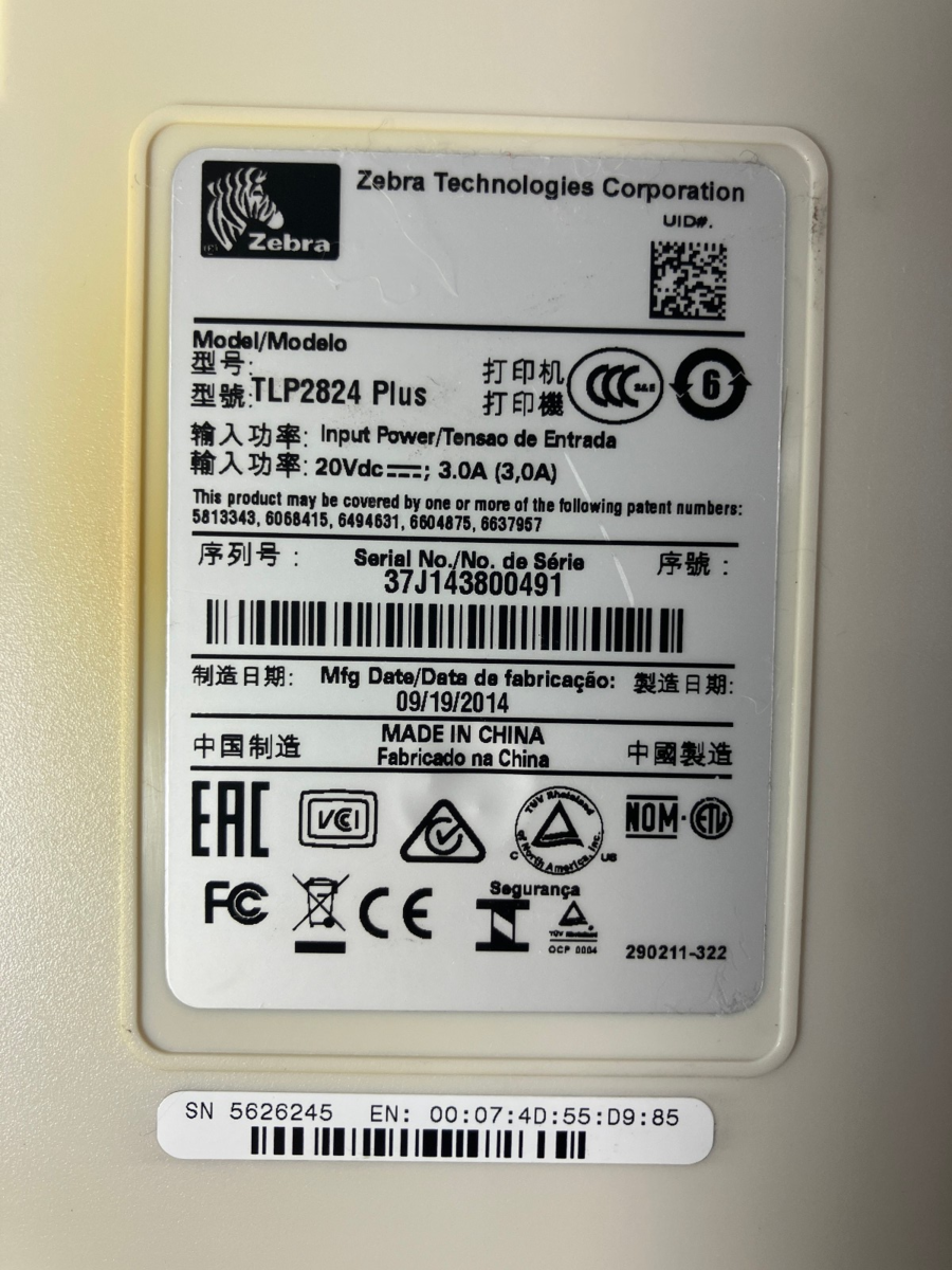 Zebra TLP2824 Plus Thermal Transfer Label Printer with USB & Ethernet Ports