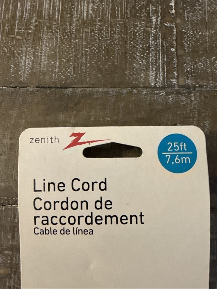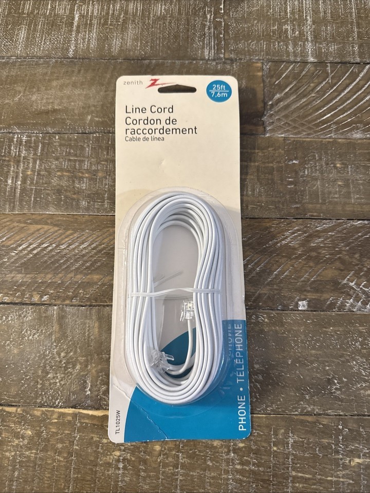 The Zenith Phone Line Cord is a 25ft cord specifically designed for home telephones and accessories. With the brand being Zenith, this phone line cord ensures quality and reliability for your communication needs. The open package makes it easy to find and use, ensuring you have a steady connection for your phone calls.
