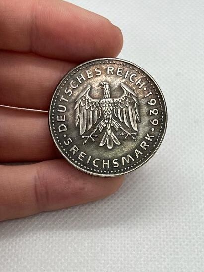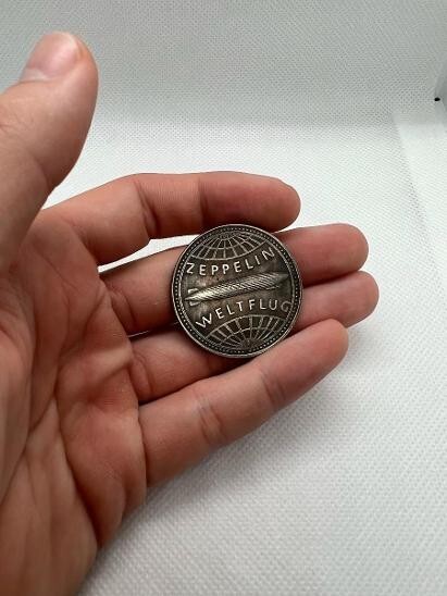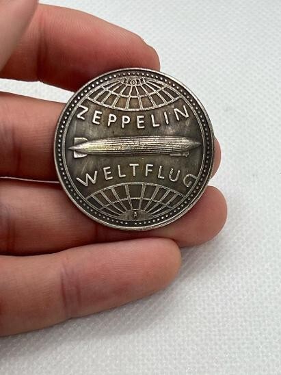La replica Zeppelin Weltflug 1929 Fantasy Coin e un notevole tributo a uno degli eventi piรน significativi della storia dell'aviazione. Originariamente emessa per commemorare il leggendario volo mondiale della LZ 127 Graf Zeppelin, avvenuto nel 1929, questa moneta funge da opera d'arte nostalgica per appassionati e collezionisti. Sul dritto, la moneta presenta una dettagliata raffigurazione del dirigibile Zeppelin, circondato dalle iscrizioni "ZEPPELIN WELTFLUG" e "PROBE", evidenziandone il carattere unico e l'importanza storica. Il rovescio mostra la scritta "DEUTSCHES RICH 1929" insieme alla denominazione "5 REICHSMARK", accompagnata da una rappresentazione meticolosamente realizzata dell'aquila tedesca, simbolo della forza e dell'orgoglio della Germania in quell'epoca.Prodotta sapientemente per replicare il design originale, questa replica garantisce che tutti i dettagli intricati siano conservati, rendendolo un pezzo prezioso per numismatici e collezionisti di manufatti storici. Pur essendo una coniazione moderna, la moneta colma efficacemente il divario tra passato e presente, rendendola un'aggiunta eccellente per chiunque sia interessato agli eventi storici e al collezionismo.