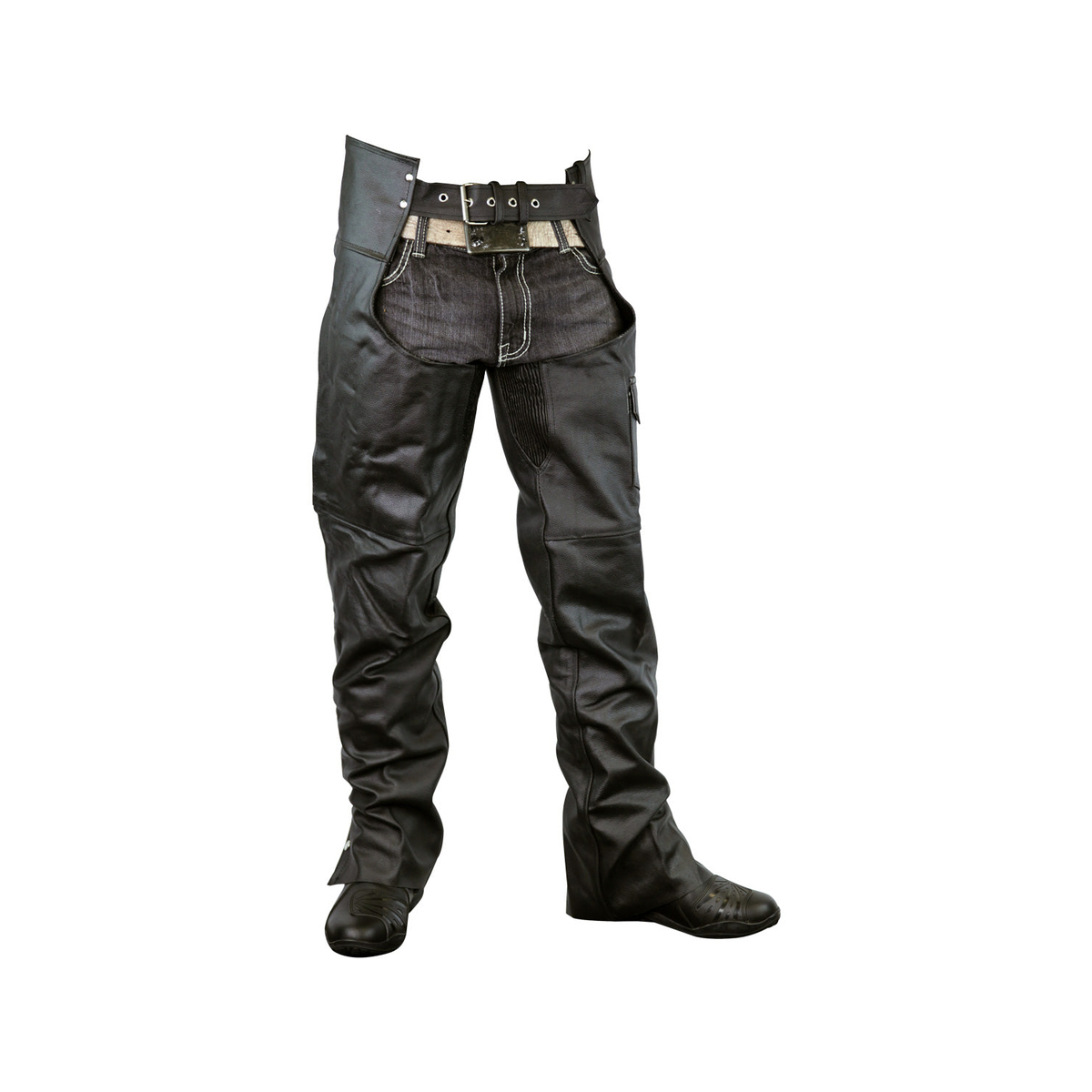 ZipOut Insulated and Lined Plain Biker Leather Chaps - 354289