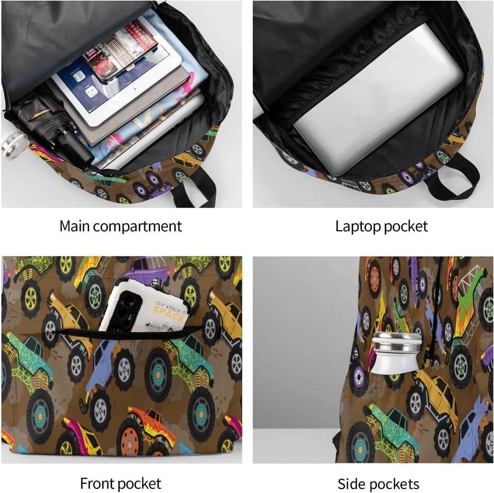 Zisqerts Truck Backpack 16 Inches Lightweight Travel Laptop Backpack Size: 11" (L) x 6.3" (W) x 16.9" (H). Material: Polyester Twill weave fabric. Roomy Compartment: main compartment inside, 2 inner small pockets, 1 small zipper pocket inside,one front pocket; 2 side pouchs. Front organizational compartment for all of your keys. Two side pocket for an umbrella, water bottle. Adjustable padded reinforced shoulder strap. Adjustable shoulder straps are perfect for choosing the appropriate length of the straps that enable it to fit your height. Multipurpose Backpacks: it is a great back pack for everyday life. It's also a perfect gifts for you and your loved one. Buy with confidence. Check out our reviews. Also, happy to combine shipping to save you when you buy multiple items.