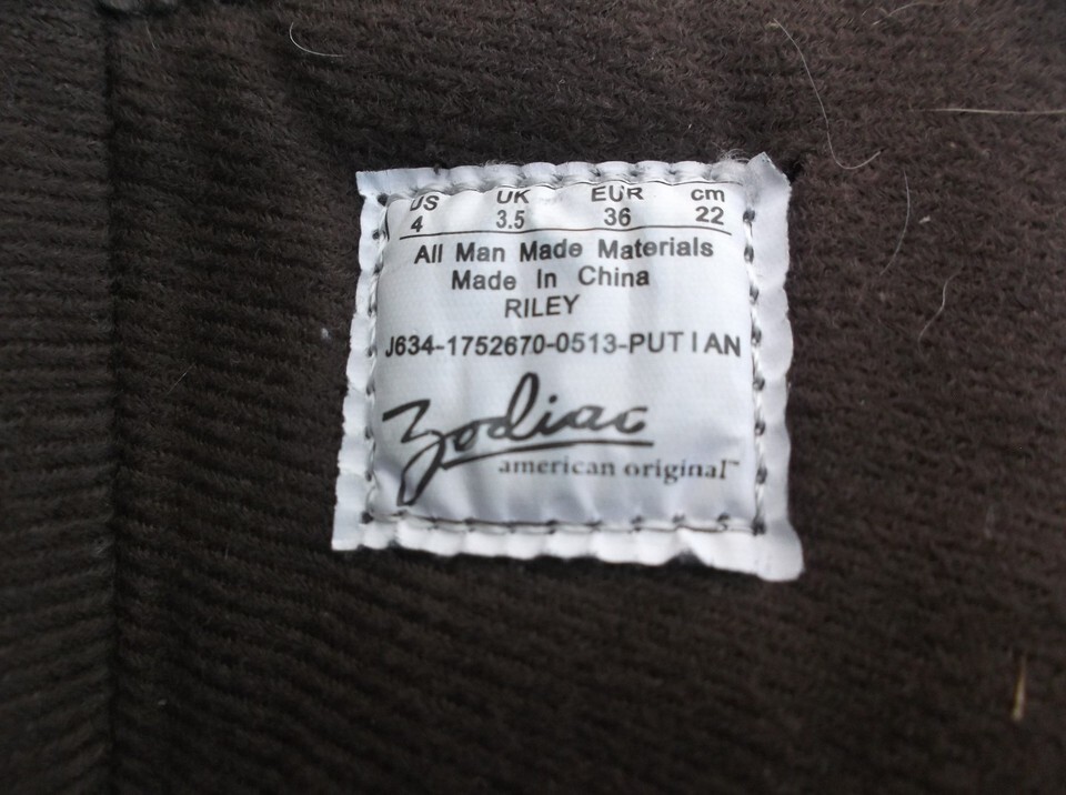 Zodiac American Original Women's Mid-Calf Boot Size: 4 Color: Brown Condition: Used, Good Defects: Zipper Threads are Unraveling, Inside Sole Lining on Right Boot is Peeling Up, Scuffs and Wear on Both Boots,Toe of Both Boots Shows Wear, Rubber Tread is Worn, Toe of the Rubber Sole is Worn Thank You for looking at my Store. I am a United States Army Veteran and our Store is Veteran Owned and we count on an honest transaction. We have a no hassle return Policy. It?s really simple if you don?t like it please return the item and I will issue you a refund. I have quickly learned that Customer Satisfaction is the number one Priority. My Store is open for Business and I invite everyone to take a quick look at what I have...Just click here and see all that I have http://stores.ebay.com/allamericanauctions2015 . We now ship every day to include SATURDAY AND SUNDAY? which means our carrier service now picks up 7 Days a week. If you BUY TODAY? your ITEM will get out no later than 72 hours after your purchase. It will have the best head start as it will be processed at the Denver Hub within 72 Hours of your purchase. Even if you buy at night your Item will be processed the next two mornings and will be at the Denver Hub WITHIN 72 HOURS. We have Incredible FAST SHIPPING and again WE NOW SHIP ON SATURDAY AND SUNDAY. If you have any questions please MESSAGE ME... If you have any CONCERNS please MESSAGE ME. If you have any ISSUES with your Item please let me fix it. I count on your Business and in return I will give you an Honest Auction. I look forward to doing Business with you. View more great items