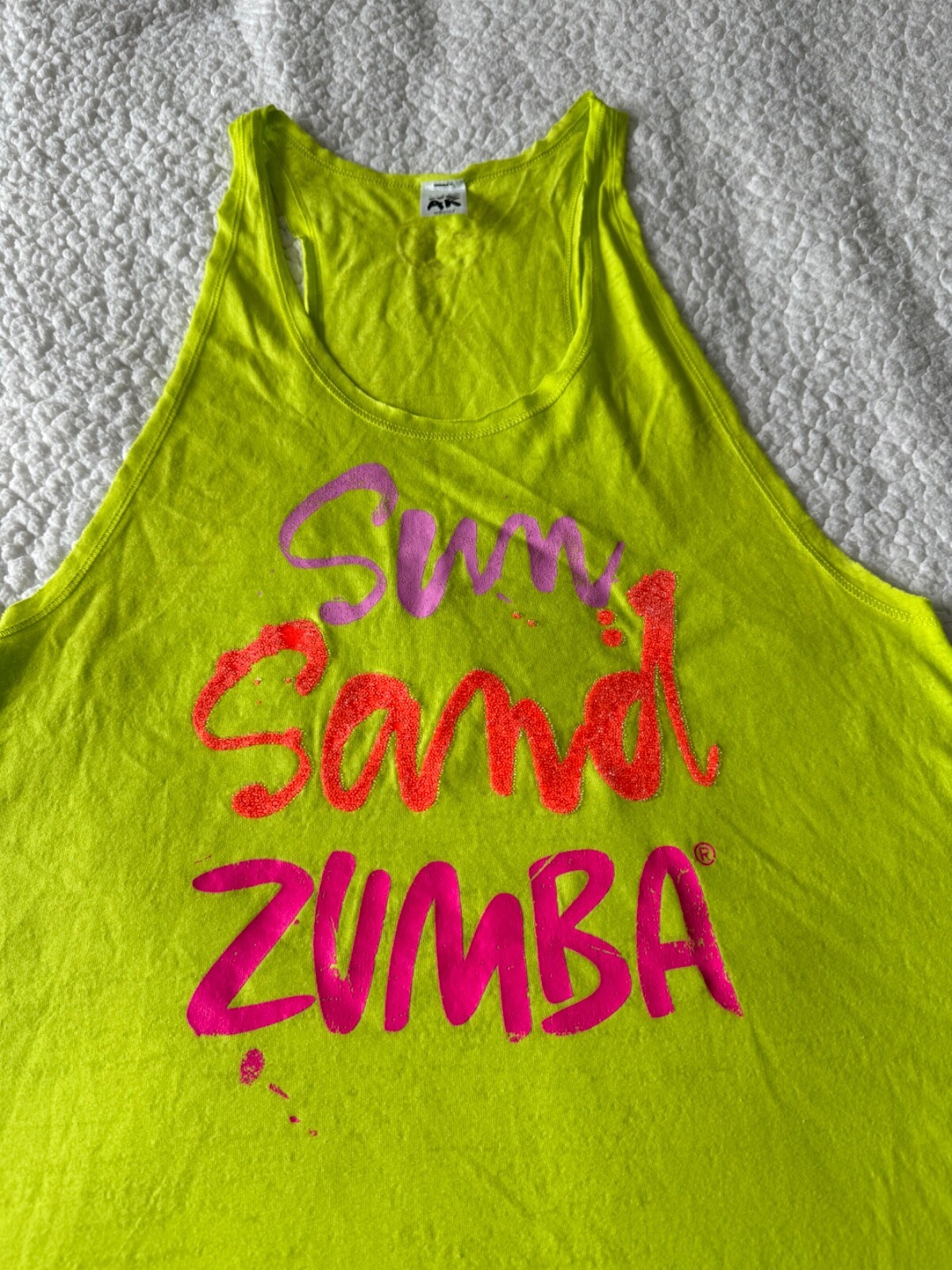 Primary image for Zumba Wear Sleeveless Green Sun Sand Zumba Racerback Tank Size XS (XSpicy) NWOT