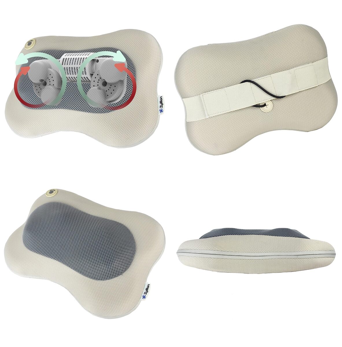 Zyllion Shiatsu Back and Neck Massager with Heat - 3D Electric Kneading Deep Tissue Massage Pillow for Muscle Pain Relief, Cream, ZMA-13