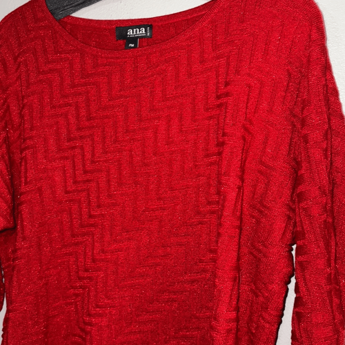 Bright red sweater by a.n.a. Petite fit. Stylish and versatile.