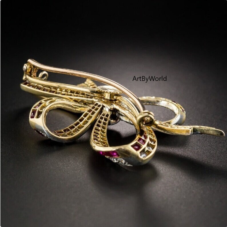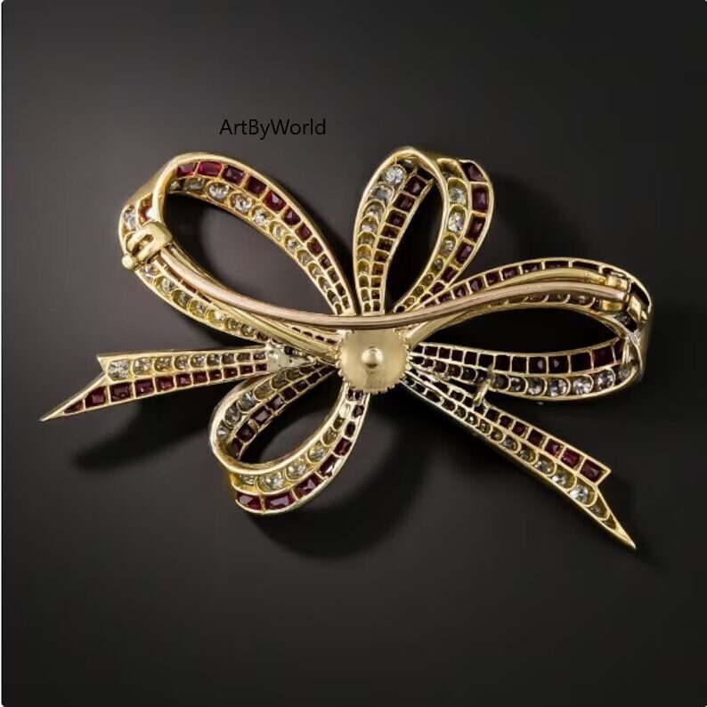 - art deco Edwardian Ruby gemstone Bow Brooch, Promise Brooch, Fancy Mens brooch
